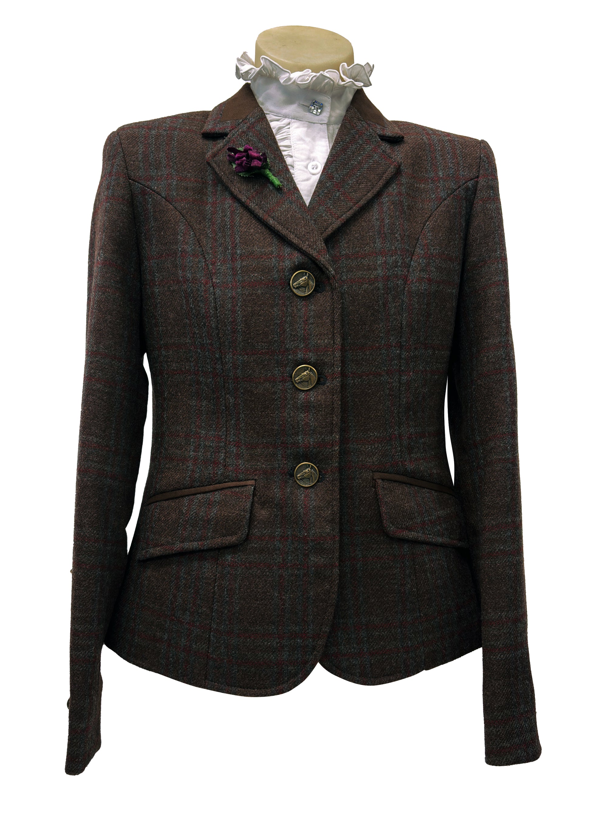 This jacket is crafted from mid-weight pure wool in rich chocolate brown and burgundy tones, complemented by chocolate brown detailing.