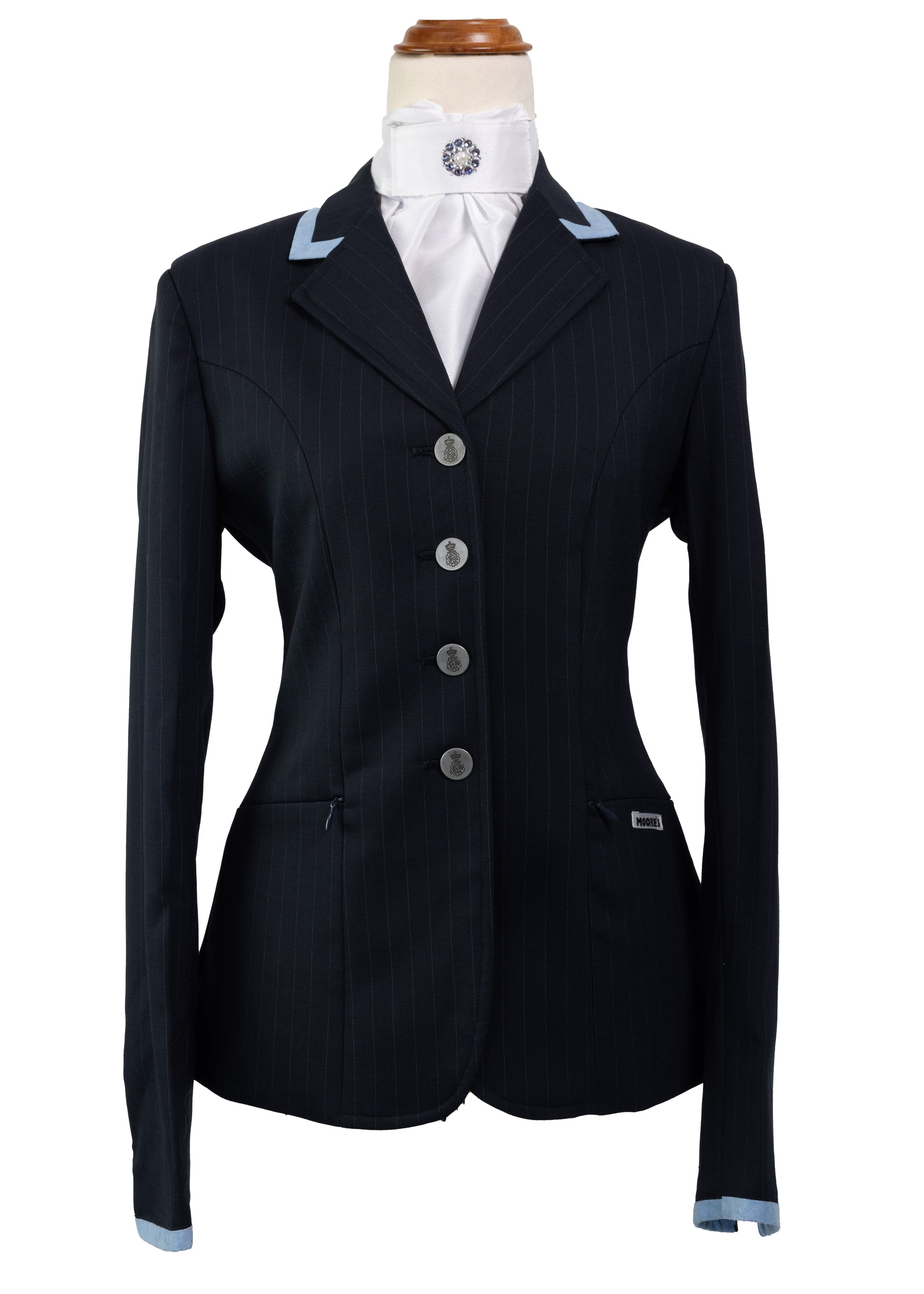 Classic Ladies Navy Stretch Jacket with Baby Blue Trim