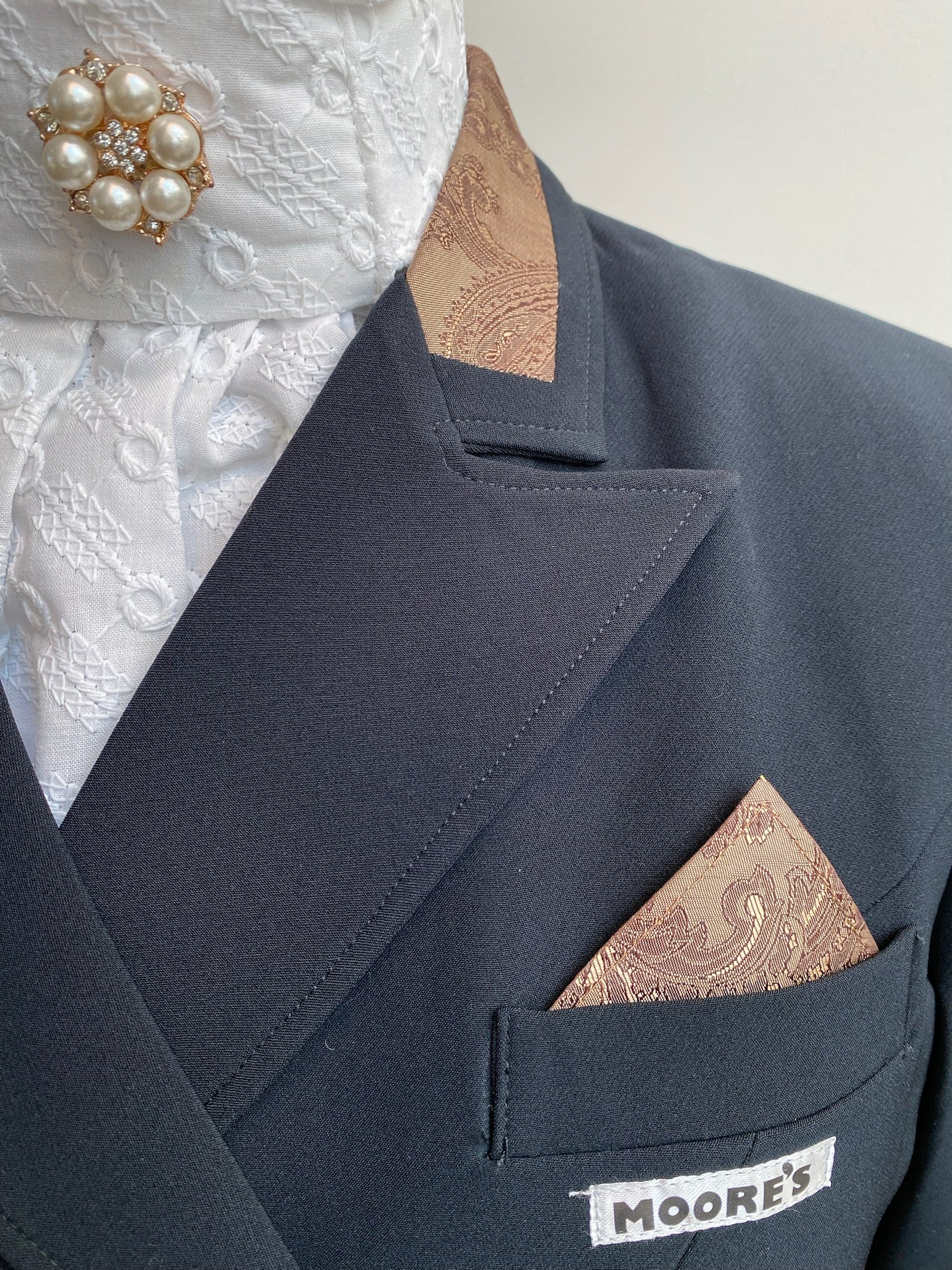 MRW Ladies Midnight Navy & Antique Gold Stretch Dressage Tailcoat
